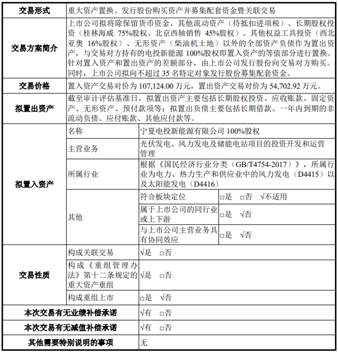 本次重大资产置换及发行股份购买资产的交易对方宁夏电投为上市公司控股股东宁国运的全资子公司,系上市公司关联方,本次交易构成关联交易。