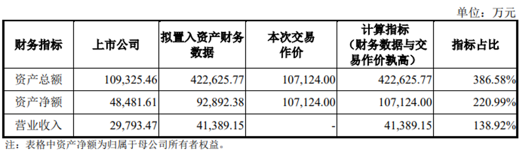 本次交易拟置入资产对本次交易是否构成重大资产重组的指标计算情况如下: