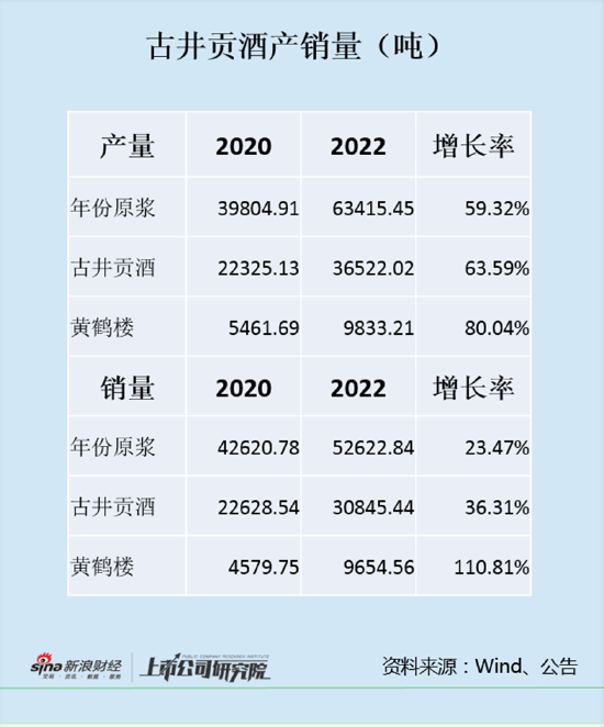 该项目建设期为五年,原定投产时间为2024年12月31日,但是到今年上半年项目进度仅为44.86%。目前古井贡酒设计产能为11.5万吨,在建产能为13万吨,加起来达到24.5万吨,2022年总销量仅为11.47万吨。在产量增速减缓的背景下,未来产能消化是个现实问题。