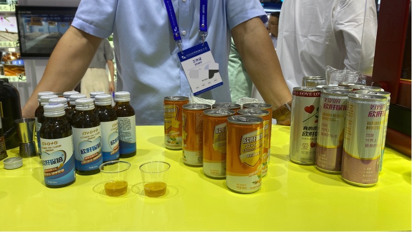 9月20日,《每日经济新闻》记者在2023世界制造业大会上看到,古井贡酒的展台,有约二分之一让位于大健康赛道的新产品,其中主要系“欣肝保倍”饮品,且是0糖0脂的饮料。上图从右向左的三种不同类型饮品,工作人员向《每日经济新闻》记者介绍,公开售价从每瓶8元到20元不等。
