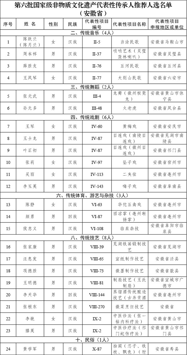 近日,在文化和旅游部官网公示第六批国家级非物质文化遗产代表性传承人推荐人选名单。其中安徽24人入选,我市蒸馏酒传统酿造技艺(古井贡酒)传承人李天华成功入选,系安徽省酒类企业唯一1人。
