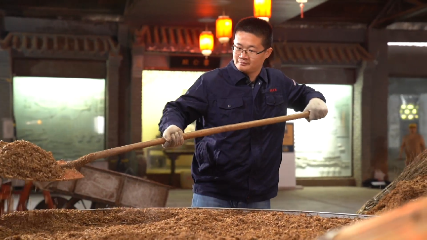 2012年,大学毕业后的崔阳同样怀着感恩之心,成为一名“古二代”,从基层业务员干起。他风雨兼程辗转多地市场,怀着一腔勇毅积极拓荒,历经4年苦练,终于晋升为区域经理,却因客户的一句问话“你酿过酒吗”,而转身参加内部竞聘成为一位酿造工人。从零开始学习出窖、上甑、摘酒等工序,又经6年的努力,崔阳才掌握了晋级为酿酒大师的必备技能。