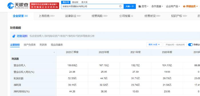 据天眼查APP数据显示,截止到去年上半年,古井贡酒旗下的“年份原浆”系列贡献收入87.61亿元,占同期总营收的77.46%。