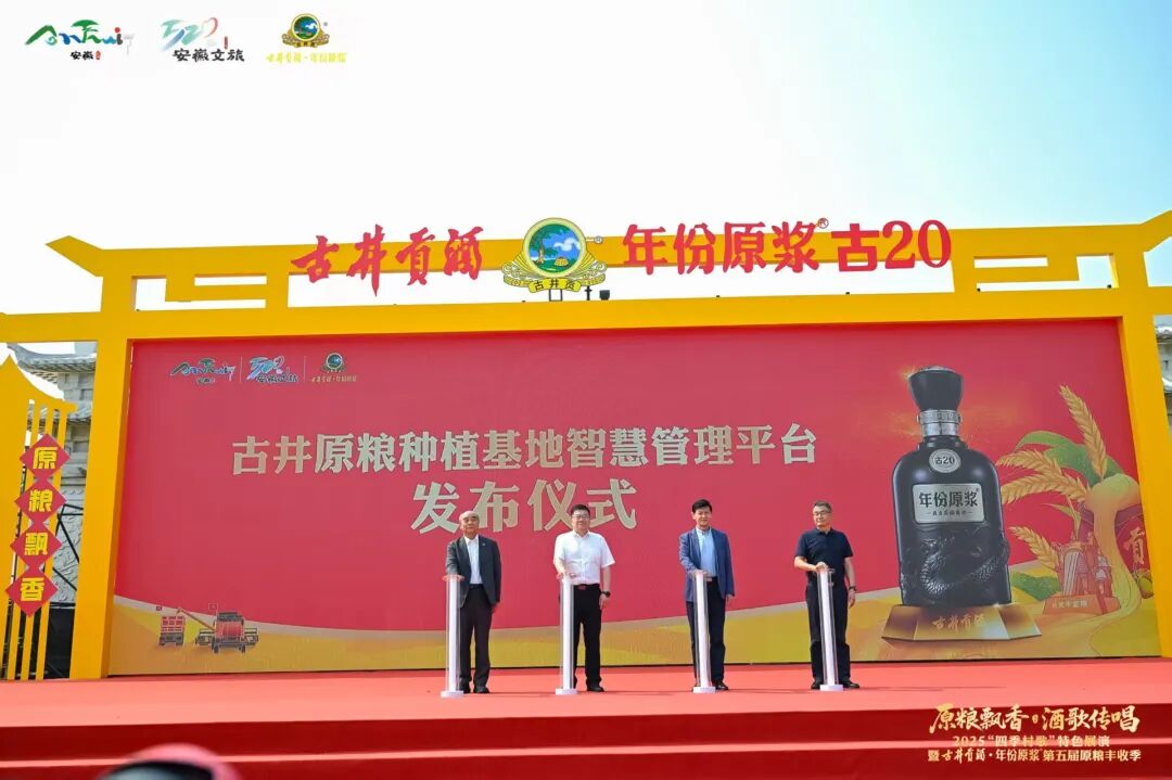 本次活动期间,古井贡酒原粮种植基地智慧管理平台正式发布。平台以“智能、开放、共享、融合”为设计理念,集成地理信息系统、物联网及AI智能算法技术,涵盖基地管理、耕地管理、种植管理、仓储管理四大核心模块,实现对原粮的可预检、可追溯、可管控,以科技赋能开启原粮种植的智慧新篇。