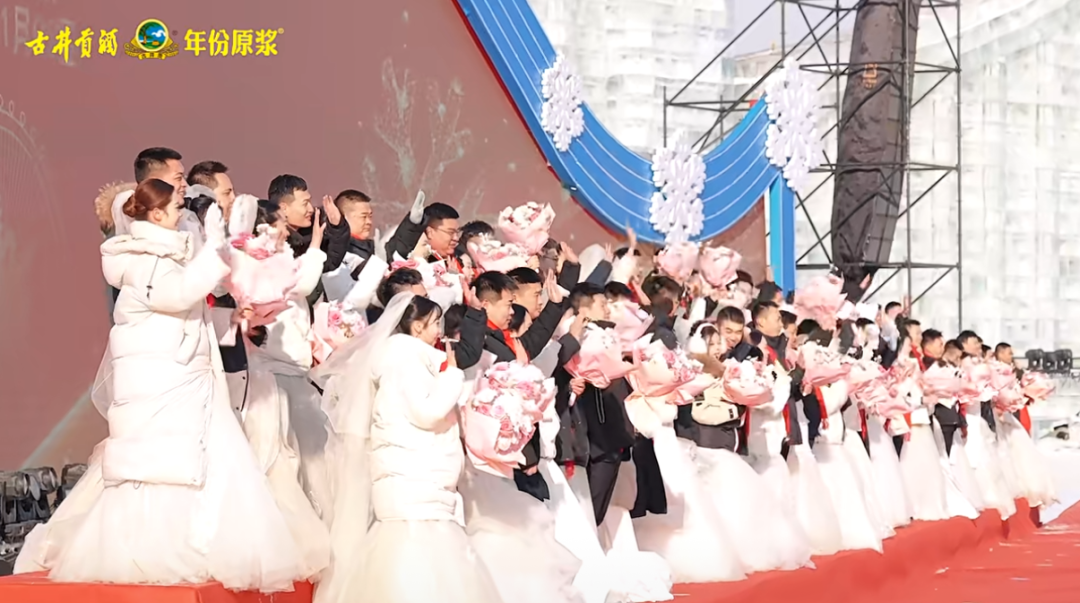 如果说冰雪雕塑是古井贡酒文化创意的展现,那么其对哈尔滨第四十二届冰雪集体婚礼的助力,则深刻体现了品牌的社会价值追求与人文关怀精神。