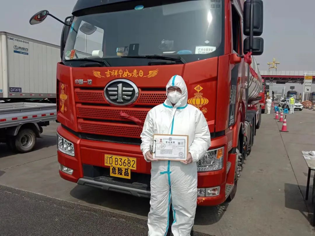 当前,各高速路口均已封闭管理,但是为保证原料的供应每天都有外地车辆来沈送货,根据防疫要求,需要企业的员工到高速口接车。采购保供中心原料业务部经理、党员徐阳和同事窦洪波主动接下了这项艰巨的任务。