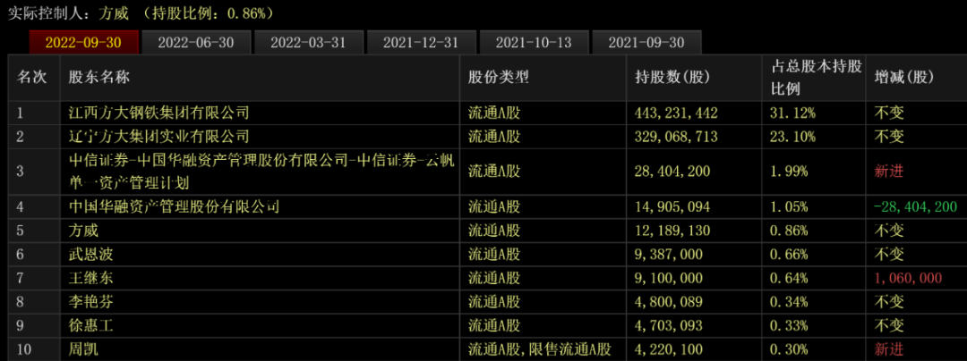 东北制药在2018年进行了混改,方大集团入主了东北制药,所以我们可以看到其第一大股东是江西方大钢铁集团有限公司,第二大股东是辽宁方大集团实业有限公司。