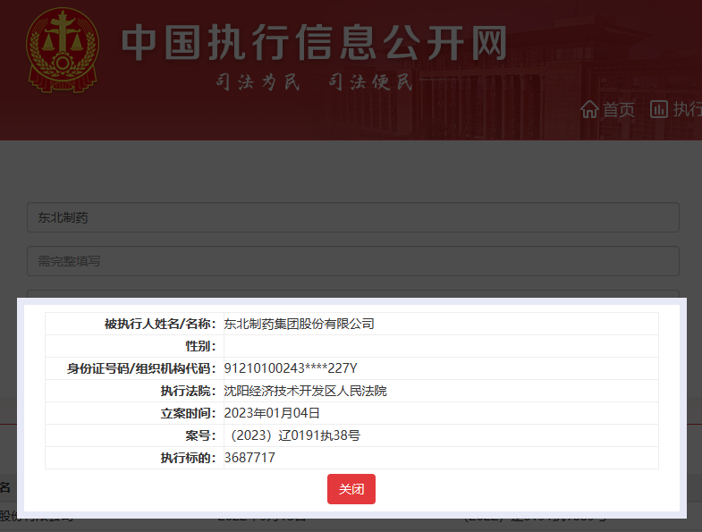 据中国执行信息公开网消息,近日,东北制药(000597.SZ)新增一则被执行人信息,执行标的368.77万元,执行法院为沈阳经济技术开发区人民法院,立案时间为2023年1月4日。