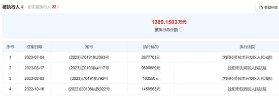 中国执行信息公开网显示,7月4日,东北制药新增一则被执行人信息,执行法院为沈阳经济技术开发区人民法院,案号(2023)辽0191执2063号,执行标的267万余元。