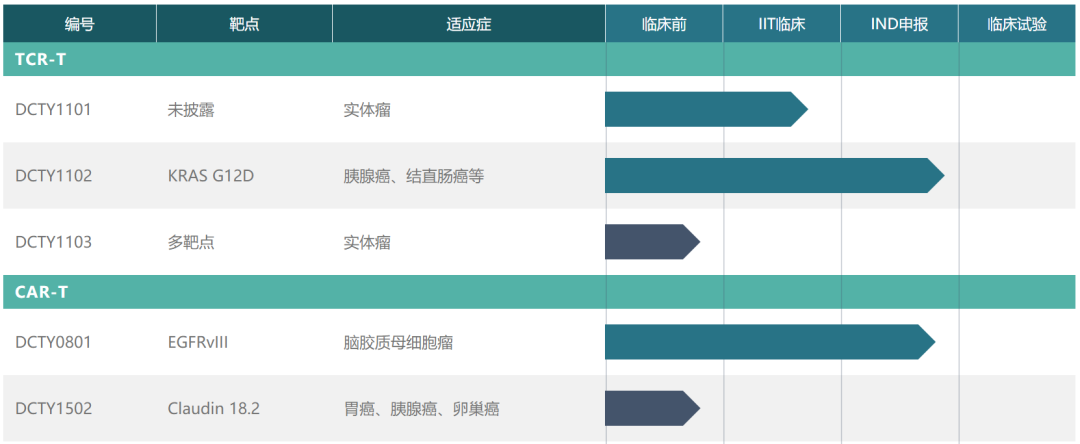 目前,鼎成肽源官网披露的管线产品包含10款TCR-T、TCR蛋白药、CAR-T细胞治疗产品和NK细胞治疗产品,适应症涵盖多种类型的肿瘤。其中,除了本次获批IND的DCTY1102注射液,其他进展较快的产品包括靶向EGFRvIII的CAR-T细胞治疗产品,已经进入IND申报阶段,拟开发用于脑胶质母细胞瘤。