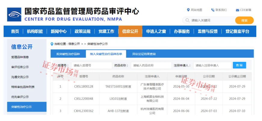 究其背后的原因,以香雪制药为例,7月30日,中国国家药品监督管理局官网发布消息,中国国家药品监督管理局药品审评中心(CDE)批准香雪生命科学(XLifeSc)的TAEST16001注射液纳入突破性治疗品种名单。这一决定标志着该产品作为中国第一个IND获批的TCR-T细胞治疗新药取得重大突破,有望加速关键性临床试验和附条件批准上市的进程,成为中国第一款上市的TCR-T细胞治疗药物。