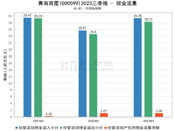 现金流量方面,青岛双星的经营活动产生的现金流量净额为1.08亿元,与上年同期基本持平。现金流入小计为29.35亿元,较上年同期的25.67亿元有所增长,而现金流出小计为28.27亿元,也略高于上年同期的24.6亿元。这一现象反映出公司在维持稳定现金流的同时,也在积极扩大经营规模。