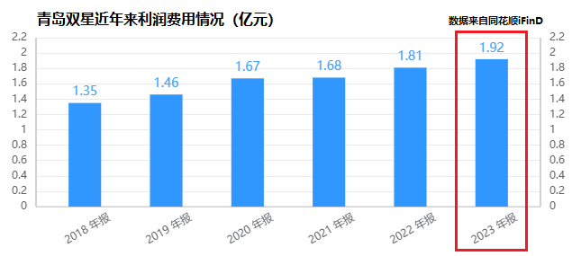 结合负债来看,近年来公司利润费用连年上涨,2023年高达1.9亿元。