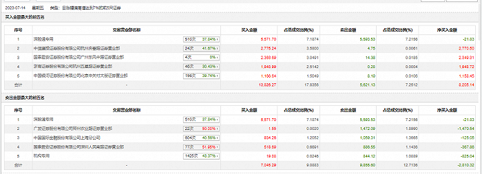 具体来看,机构买入19.08万元,卖出844.12万元,合计净卖出825.04万元。此外,深股通专用、中信建投证券杭州庆春路证券营业部分别买入5571.70万元、2775.24万元;深股通专用、广发证券郑州农业路证券营业部分别卖出5593.53万元、1472.09万元。