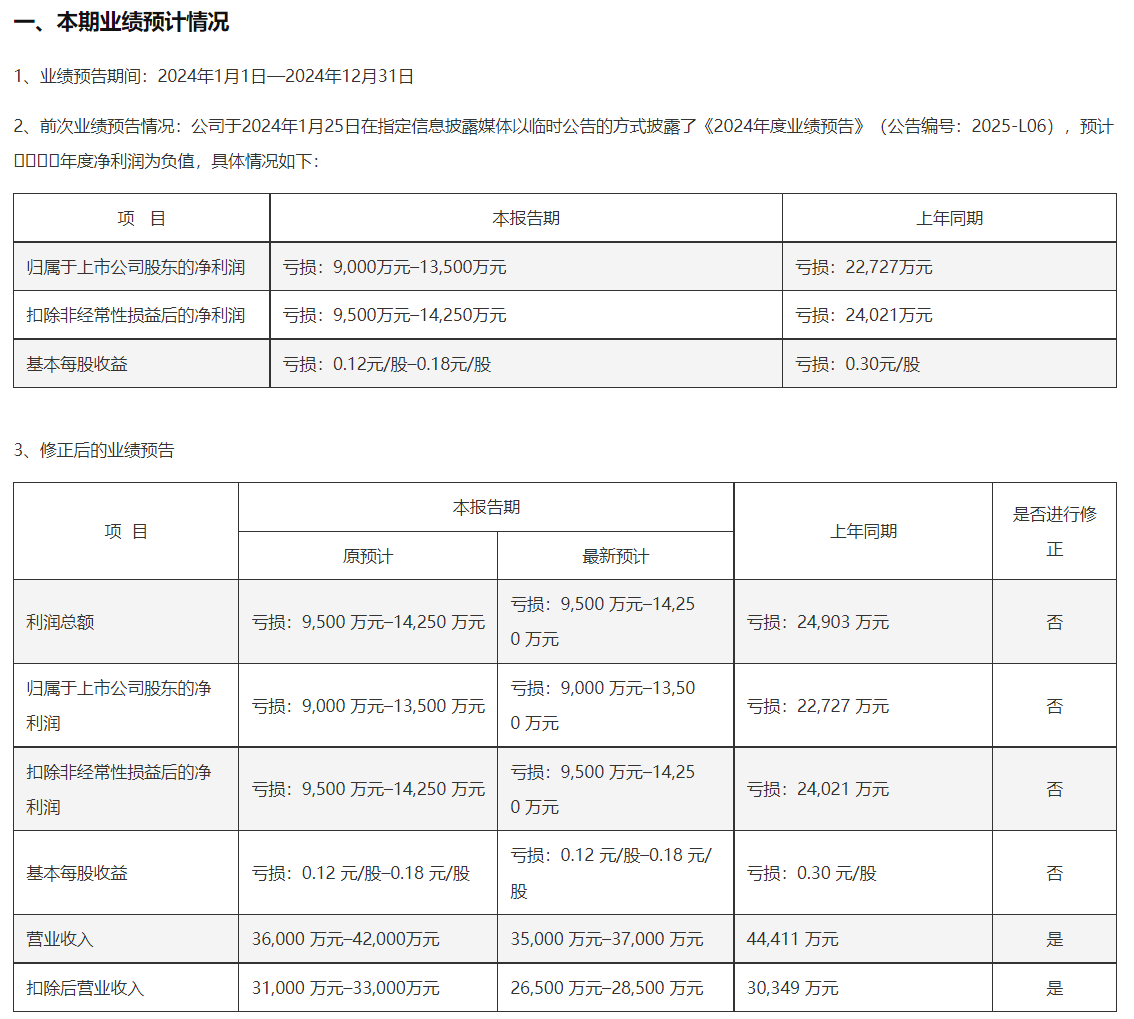 3月22日阳光股份还对其2024年的业绩做出修正。2024年该公司实现归属于母公司股东的净利润为亏损9000万元-13500万元。