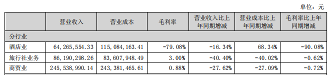 情况在2023年有了好转。截至2023上半年,公司酒店业务营业收入为7883.42万元,同比增长300.10%,营业成本为7460.41万元,同比增长142.40%,毛利率亦回正为5.37%。