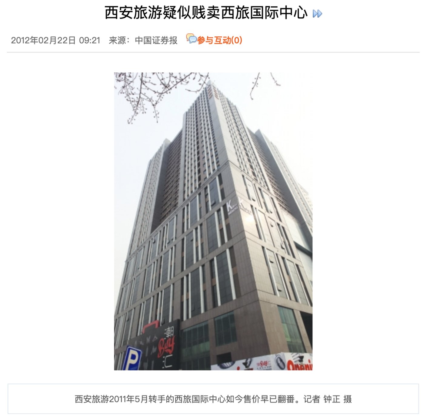 虽然早在2003年企业就宣称“将以旅游业为主导,以石油开发、房地产为辅助产业”,但地产业务直到2010年才改变了“打酱油”的角色。该板块得以成型主要来自下属小寨饭店改造、开发的“西旅国际中心”项目。