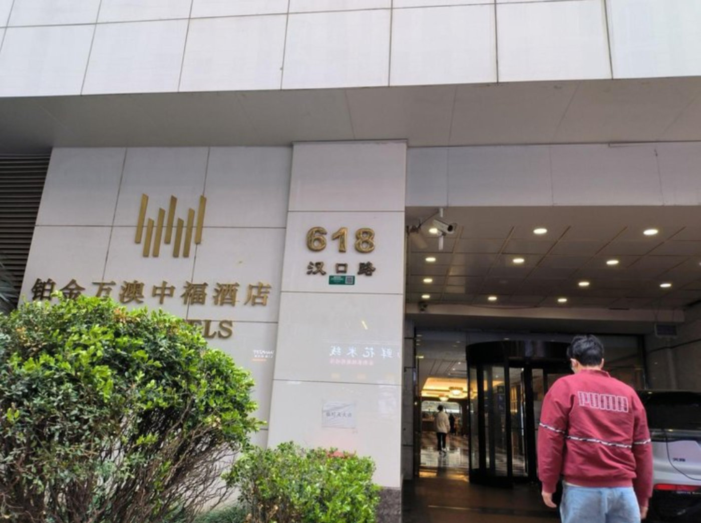 “铂金万澳”是万澳品牌矩阵中的高端系列,位于上海的“铂金万澳”酒店由当地“中福大酒店”加盟后重新装修而来,挂牌显示全称为“铂金万澳中福酒店”(在线平台地址为九江路619号)。