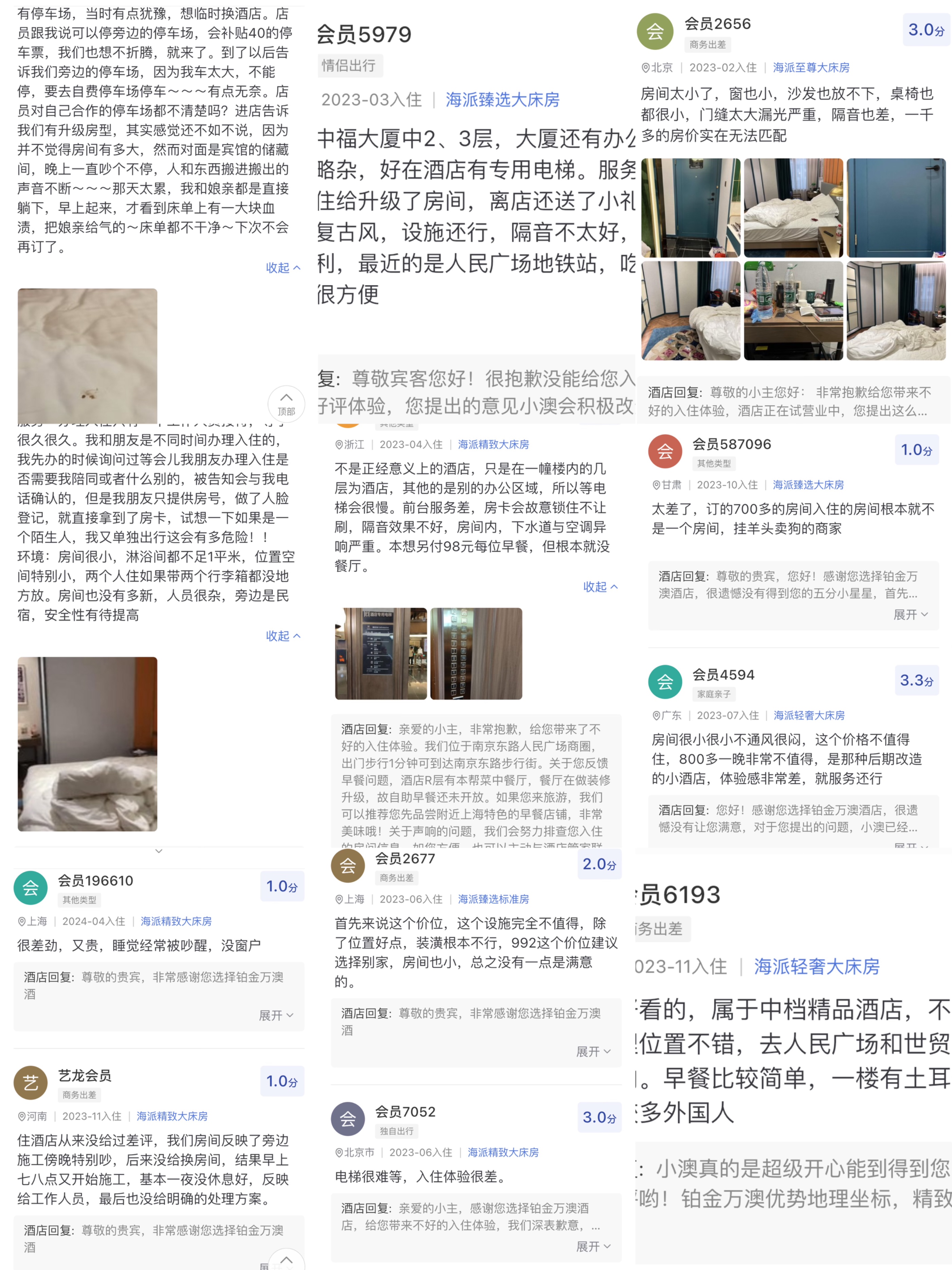 在上海滩这般搞起来的“铂金万澳”酒店,其在线平台的客户评论中,有一段时间就充斥着对酒店价格对应品质的争议。