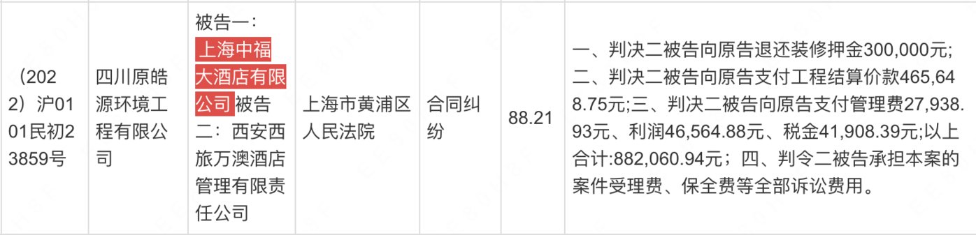 一家四川工程公司还将中福大酒店与西旅万澳共同起诉,只为讨要装修工程款。