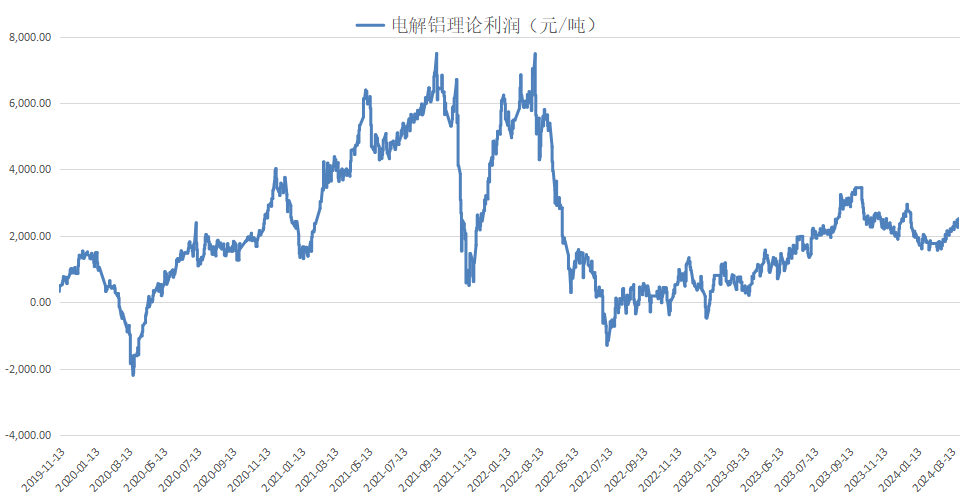电解铝理论利润数据来源:华融融达期货测算
