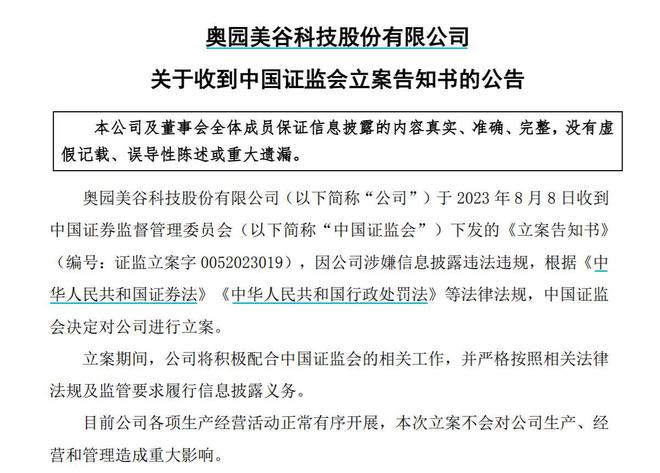 *ST美谷(奥园美谷)9日晚间公告称,证监会决定对公司进行立案。