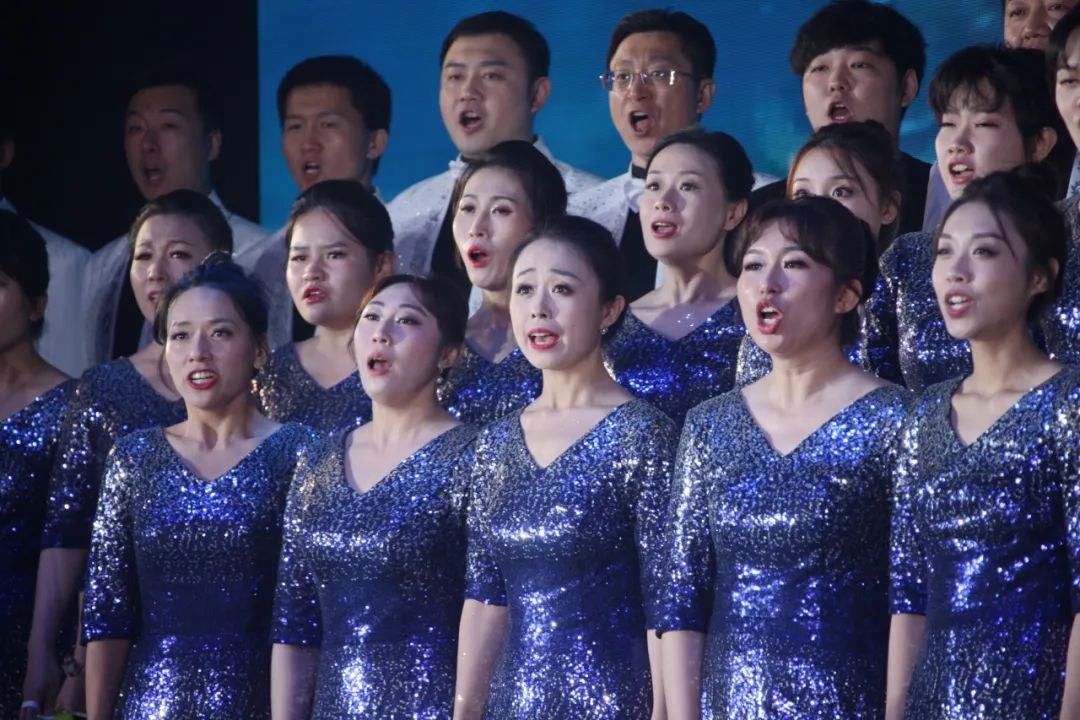 “我向你奔赴而来、你就是星辰大海”动人的和声、深情的演唱,星光闪耀的蓝色的演出服与缎带演绎的深邃大海为观众带来了一场视听盛宴。