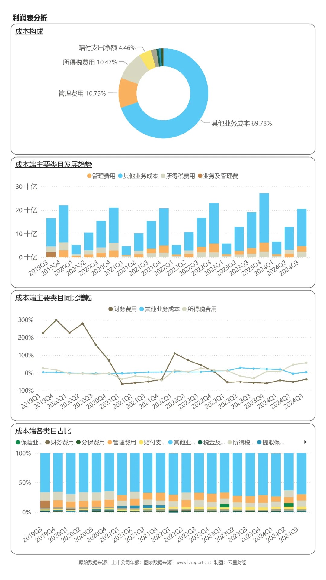 在成本端,中油资本的主要成本包括其他业务成本(占比69.78 %)、管理费用(10.75 %)和所得税费用(10.47 %)。