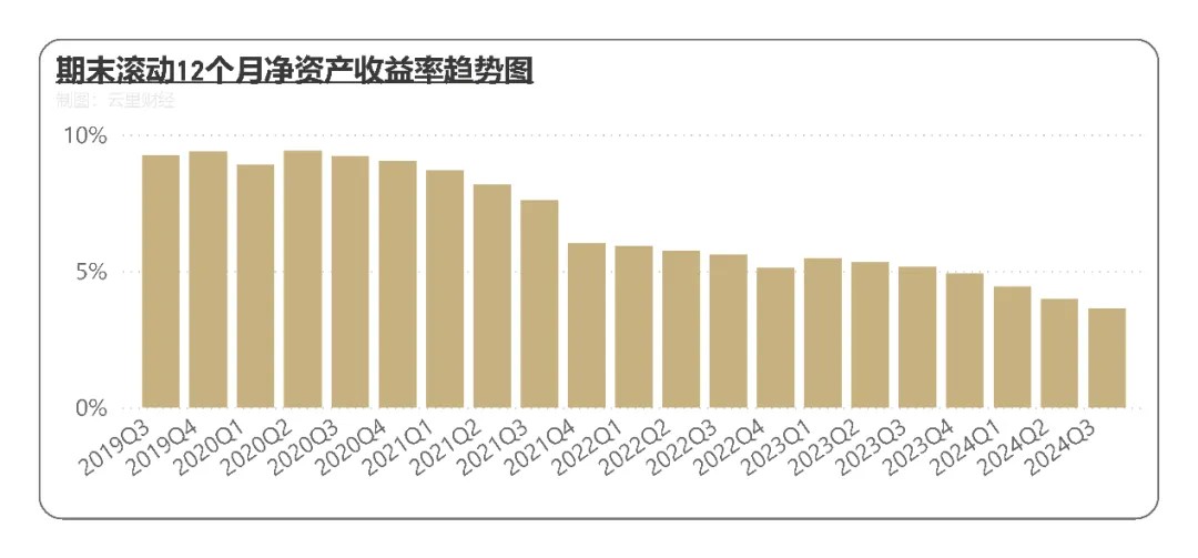 报告期中油资本的滚动12个月净资产收益率为3.64%,排在行业第36位,且在周期内从2020Q3季度开始呈现持续下滑的态势。