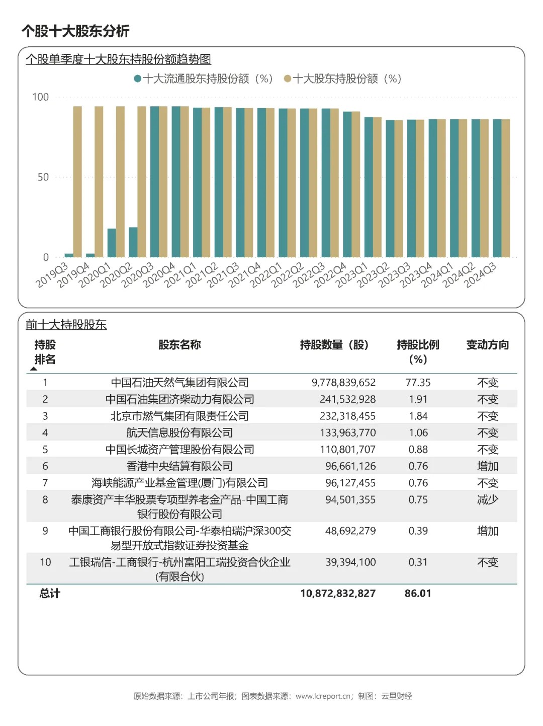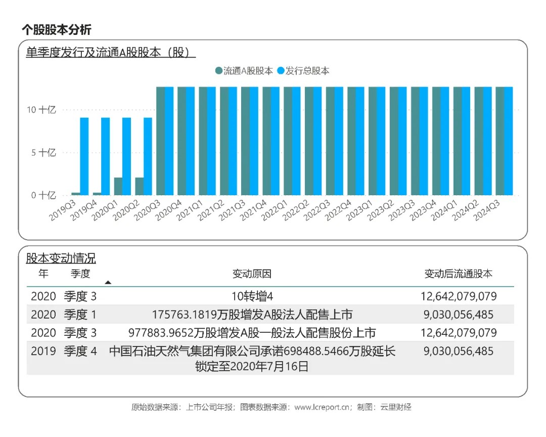 2)股本及十大股东持股比例报告期末,中油资本的总发行股本为126.42亿股,在2020Q3季度执行转股后,股本一直保持稳定至今。
