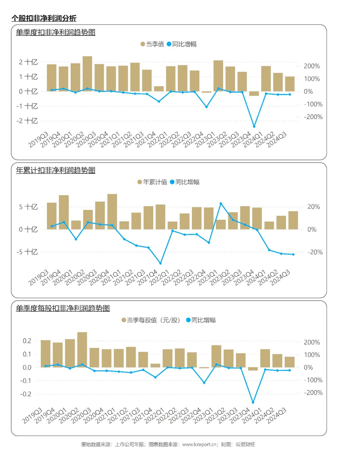 报告期,中油资本实现扣非净利润额10.08亿元,同比增幅为-24.02%;而今年前3个季度,中油资本实现扣非净利润额39.80亿元,同比增幅为-22.18%;当季每股扣非净利润为0.08元;同比增幅为-24.02%。拉长时间看,五年时间过去了,中油资本的每股扣非净利润其实是在下行趋势。