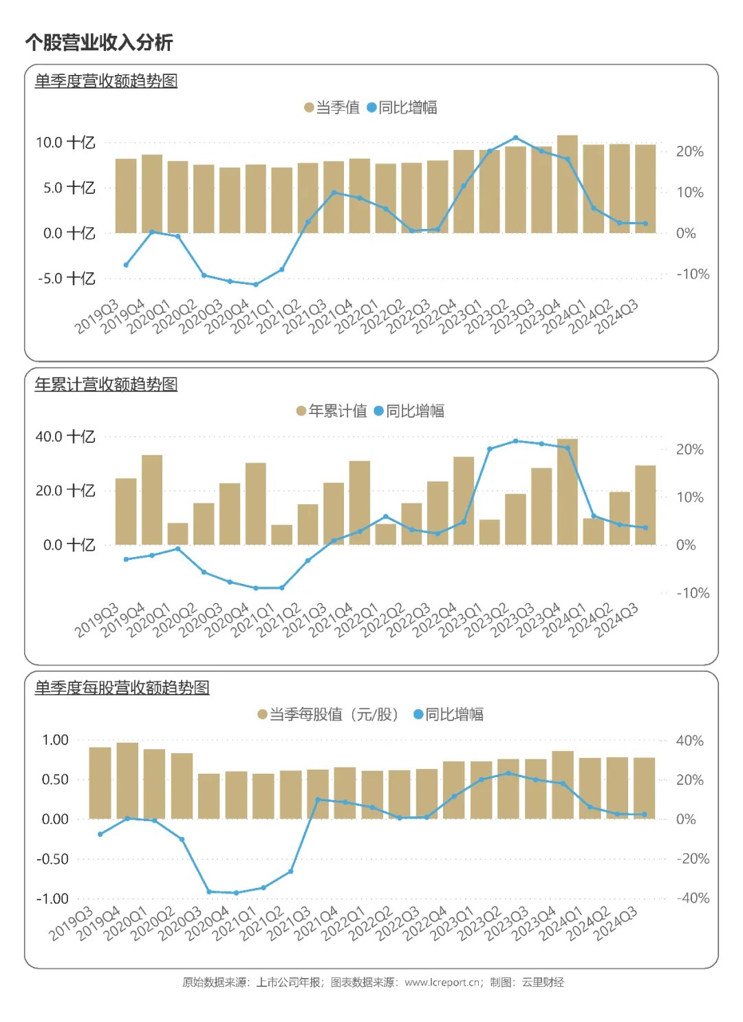 2024Q3季度,中油资本实现营业收入97.46亿元,同比增长2.28%;而今年前3个季度,中油资本累计实现营业收入额292.15亿元,同比增幅为3.55%;当季每股营收为0.77元,同比增幅为2.27 %。拉长时间看,报告期中油资本的每股营收不及期初水平。