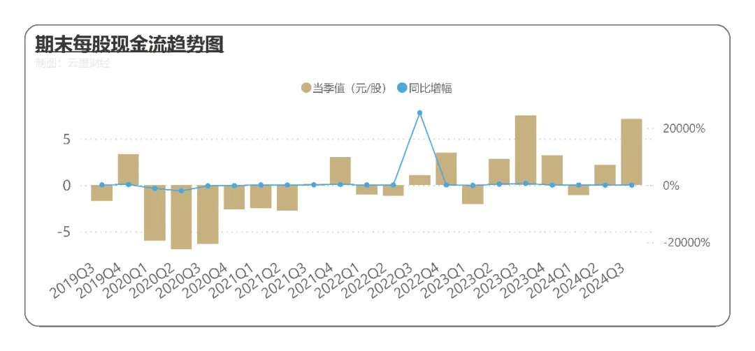 2、现金流量表分析我们再来看下中油资本的现金流情况。报告期,中油资本的每股现金流为7.15元/股,同比增幅为-4.66%。