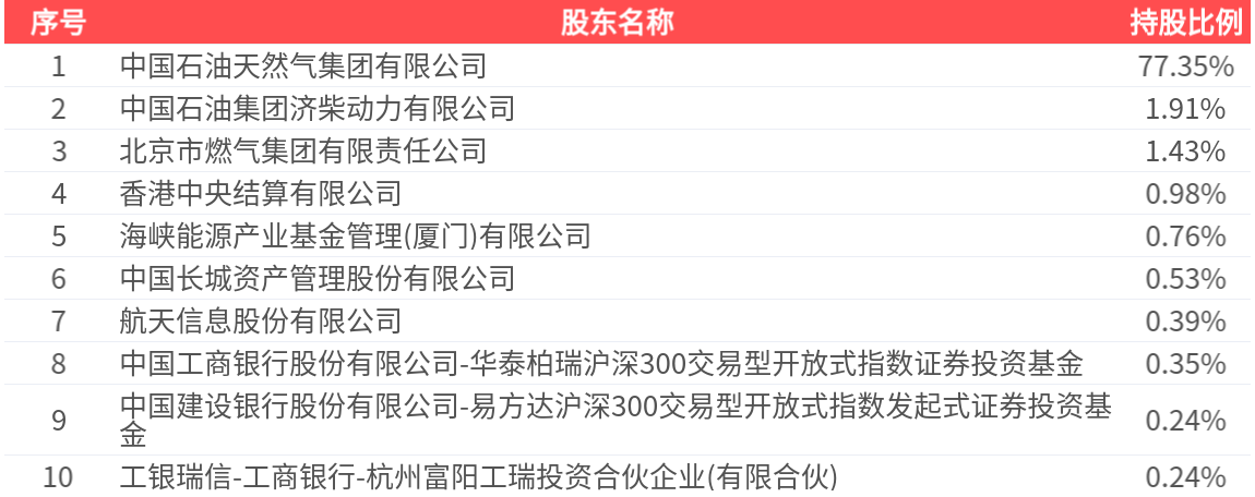 公司股东户数为20.54万户,前十大股东持股数量为106.40亿股,占总股本比例为84.17%,前十大股东持股情况如下: