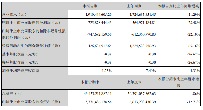 新华联昨晚披露的2021年半年度报告显示,今年上半年,公司实现营业收入19.19亿元,同比增长11.29%;归属于上市公司股东的净利润-7.26亿元,同比减少28.48%;归属于上市公司股东的扣除非经常性损益的净利润-7.48亿元,同比减少22.10%;经营活动产生的现金流量净额4.27亿元,同比减少65.16%。