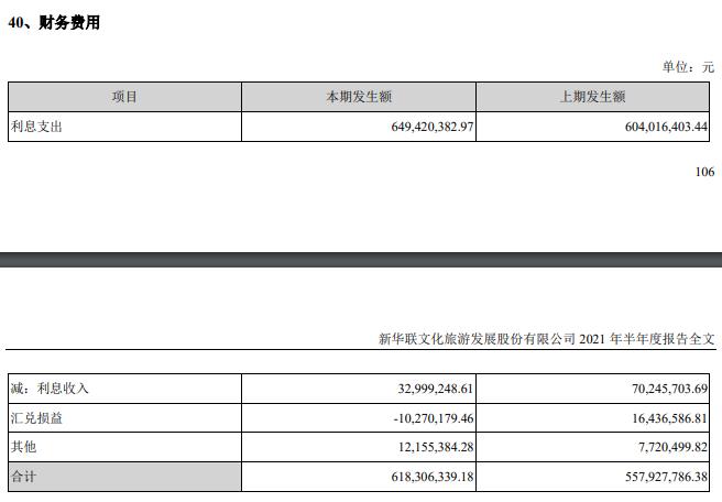 今年上半年,新华联财务费用6.18亿元,其中利息支出6.49亿元。