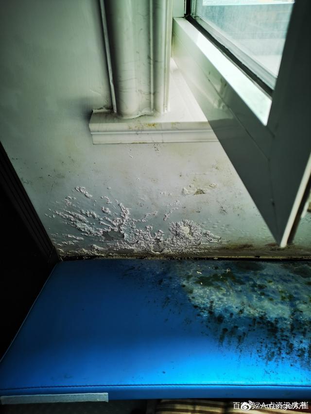 在其图片中可以看到所住房屋天花板漏水,多处墙壁开裂,甚至有的地方长了大量霉斑。