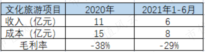 文化旅游项目刚进入收获季就碰上新冠疫情打击,公司年报从2020年开始单独列示文化旅游行业收益——果然不出意外,亏损运营。