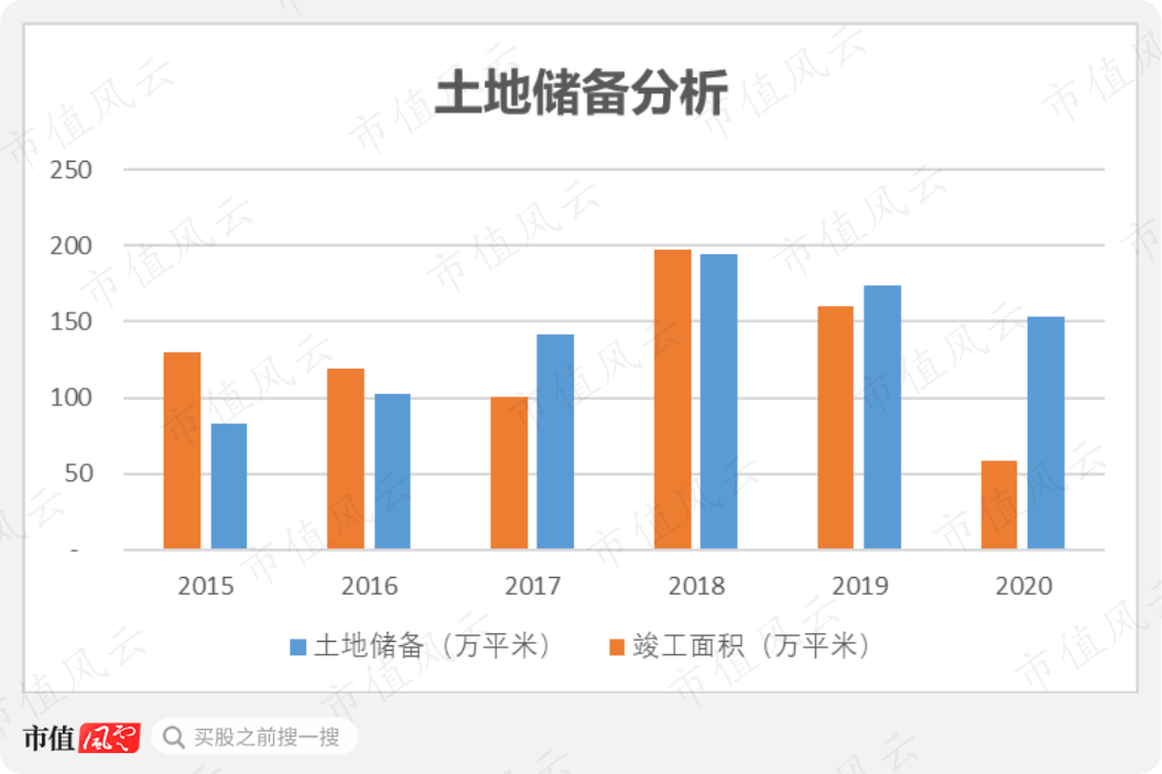 同预收账款情况类似,2020年公司土地储备之所以没有大幅下滑,与工程施工进度缓慢有直接关系。