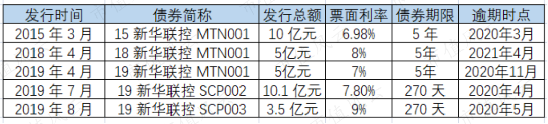 新华联控股2015年至2019年发行的的五款债券,于2020年3月开始陆续全部违约。