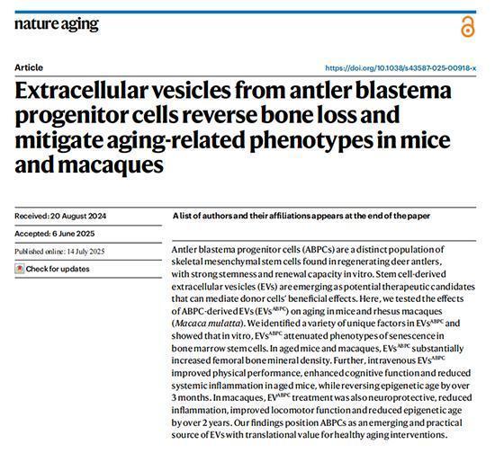 吉林敖东 大力投入研发,聚焦核心物质基础研究,布局抗衰与再生医学前沿,推动中医药从“经验传承”向“科学解码”跨越。持续追踪挖掘鹿茸现代科研价值:国际期刊《细胞发现》证实鹿茸中“尿苷”具备抗衰修复作用,《自然?衰老》验证鹿茸干细胞外囊泡可逆转动物模型骨质流失、减轻神经炎症,甚至使恒河猴生物学年龄平均“年轻”2.14年。这些研究,为鹿茸传统功效提供现代注解。