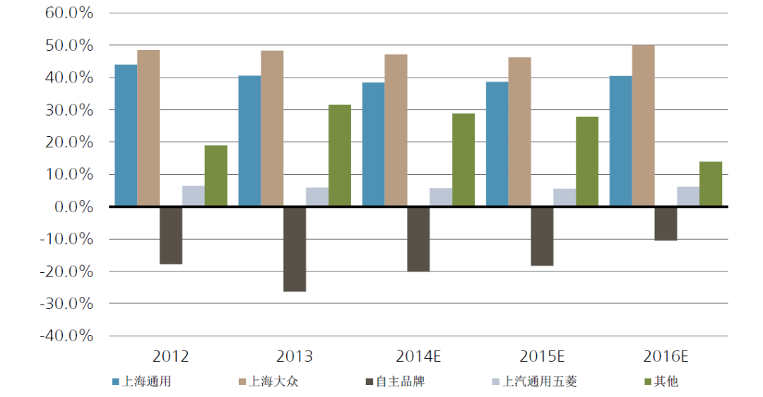 图5: 2012-2016上汽集团的历年净利润拆分,资料来源:公司数据,瑞银证券