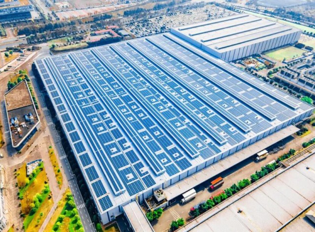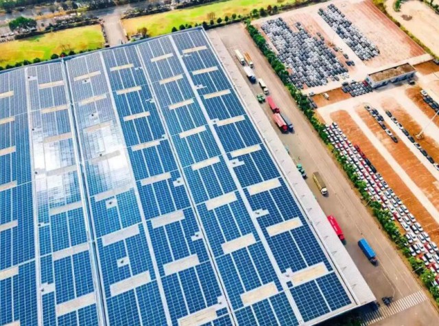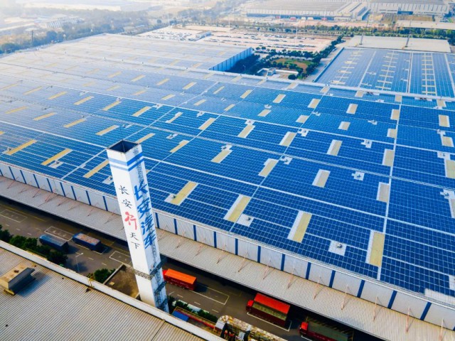 烈日当空,走进位于重庆两江新区的长安汽车鱼嘴生产基地,只见一排排光伏电板整齐排列于厂房屋顶,在阳光的照射下,正源源不断地产生清洁电能。