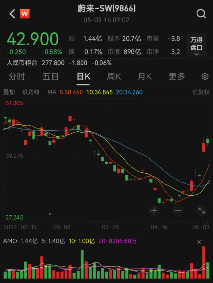 5月2日及3日两个交易日内,新势力股价飙涨:港股蔚来-SW累计上涨20%,小鹏汽车-W涨幅超过13%,理想汽车-W也涨逾3%。