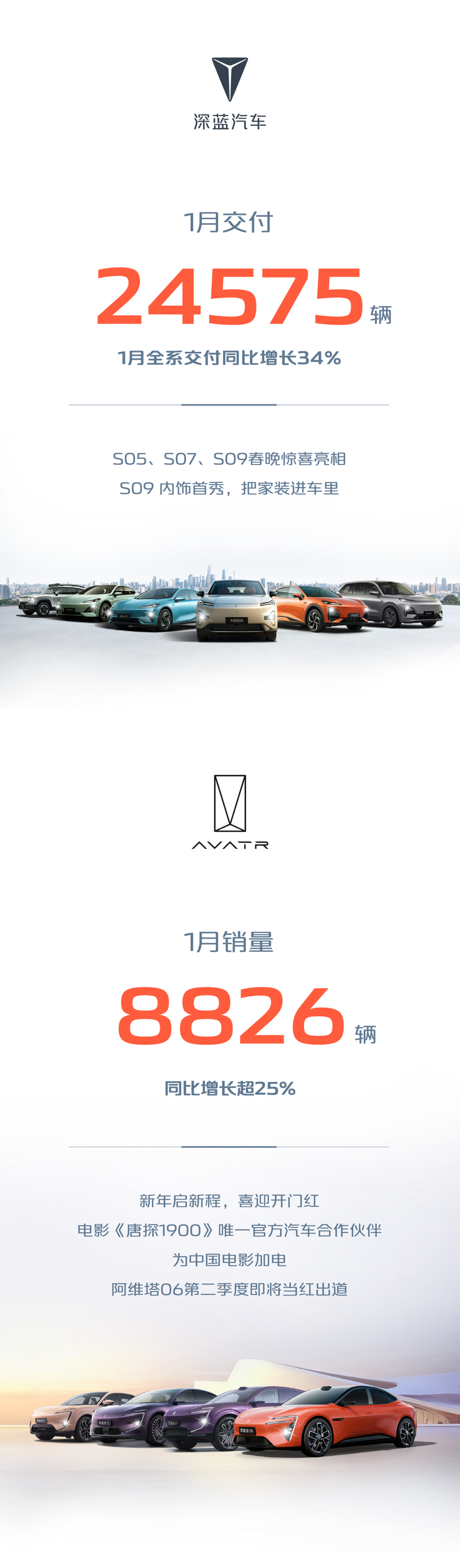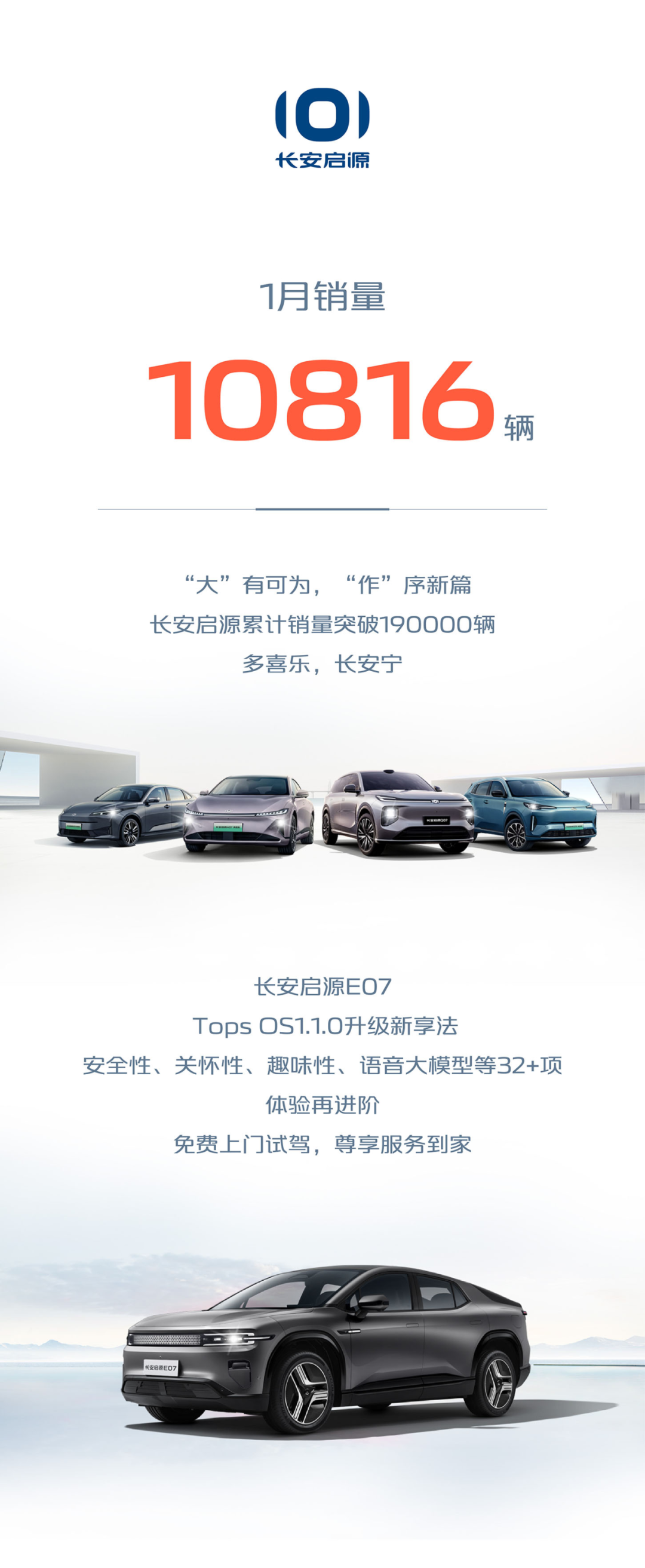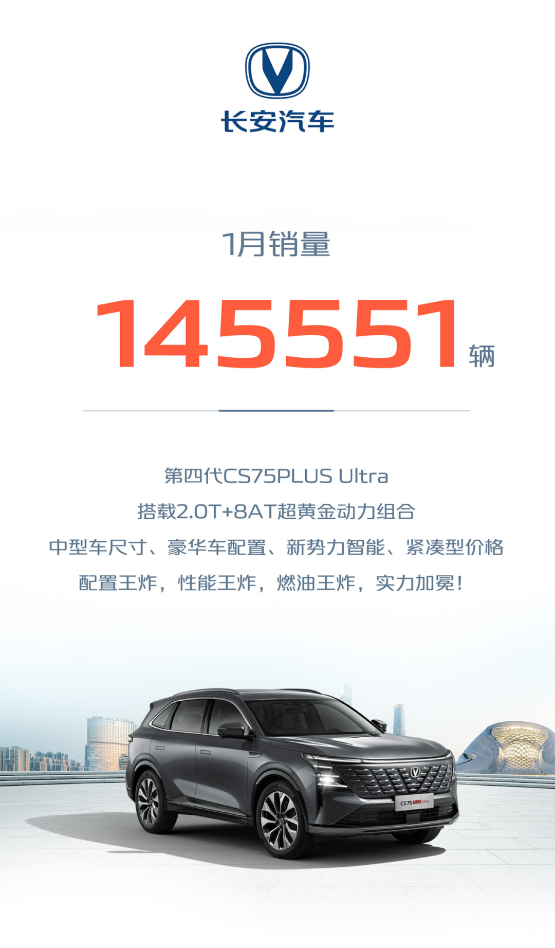 销量快报|长安汽车2025年1月销量275700辆,新能源1月销量67487辆,同比增长26.8%