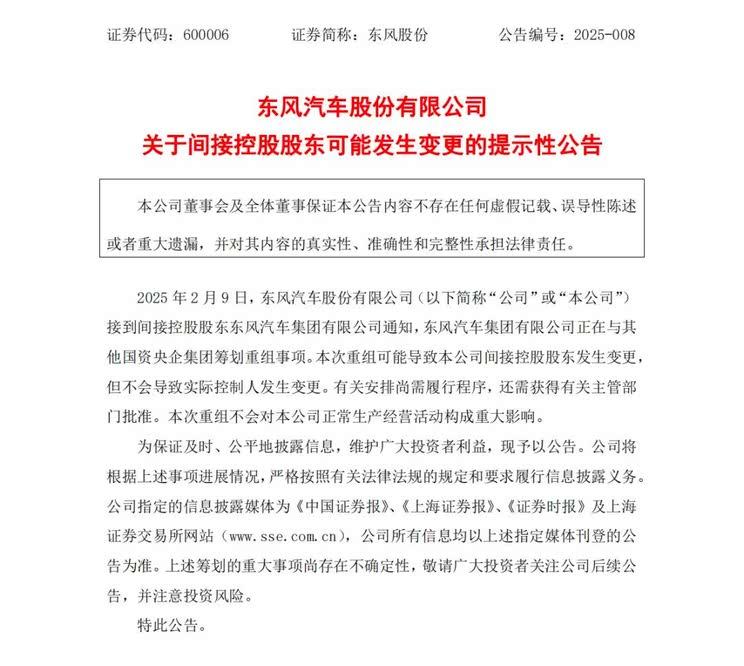 此次人事调整恰逢业内传出东风与长安或将重组的消息。有知情人士透露,双方母公司东风集团和兵装集团正在筹划涉及旗下上市公司的重大资产重组事项。分析人士指出,若两家车企实现合并,将有望在技术研发、供应链管理和销售网络等方面形成优势互补。特别是在产能整合方面,新集团将获得更大的资源配置空间和成本优化潜力。