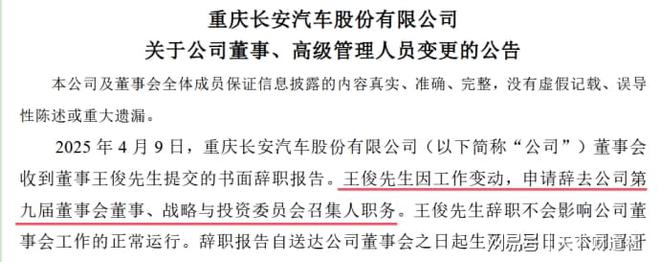 就在长安汽车发布财报前夕,公司总裁王俊辞职引发广泛关注。