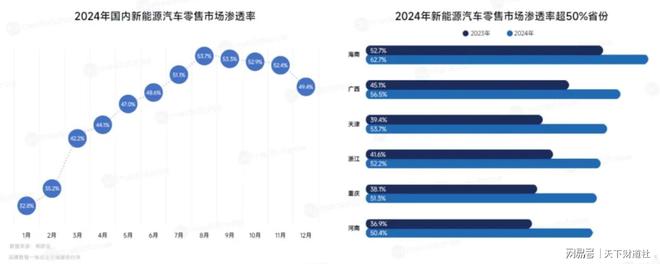 数据显示,2024年中国新能源汽车销量突破1286万辆,在7月份渗透率首次突破50%,且这一成绩连续保持了五个月。全年渗透率达到了46%。