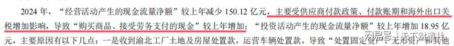 净利润下滑时,通常还伴随着资金吃紧情况,长安汽车在这方面表现尤为典型。财报显示,2024年经营活动产生的现金流量净额同比减少150亿元,降幅高达76%。
