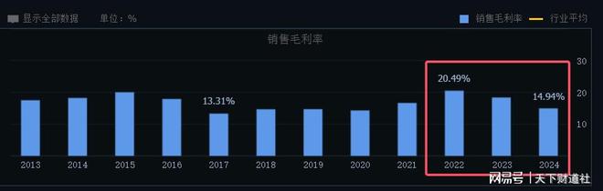 当然还有其它原因和表现。通常情况,净利润下滑与毛利率下降有关。2024年长安汽车销售毛利率不足15%,已是连续第三年出现下降。